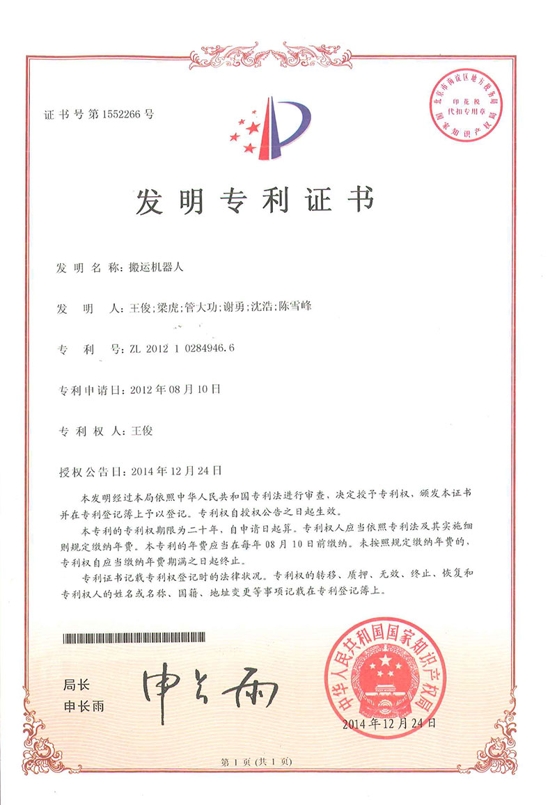 • 搬運(yùn)機(jī)器人-專(zhuān)利證書(shū)